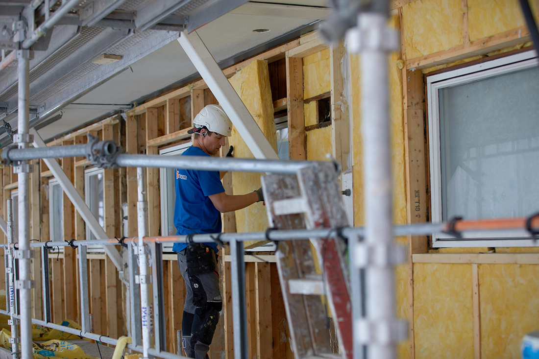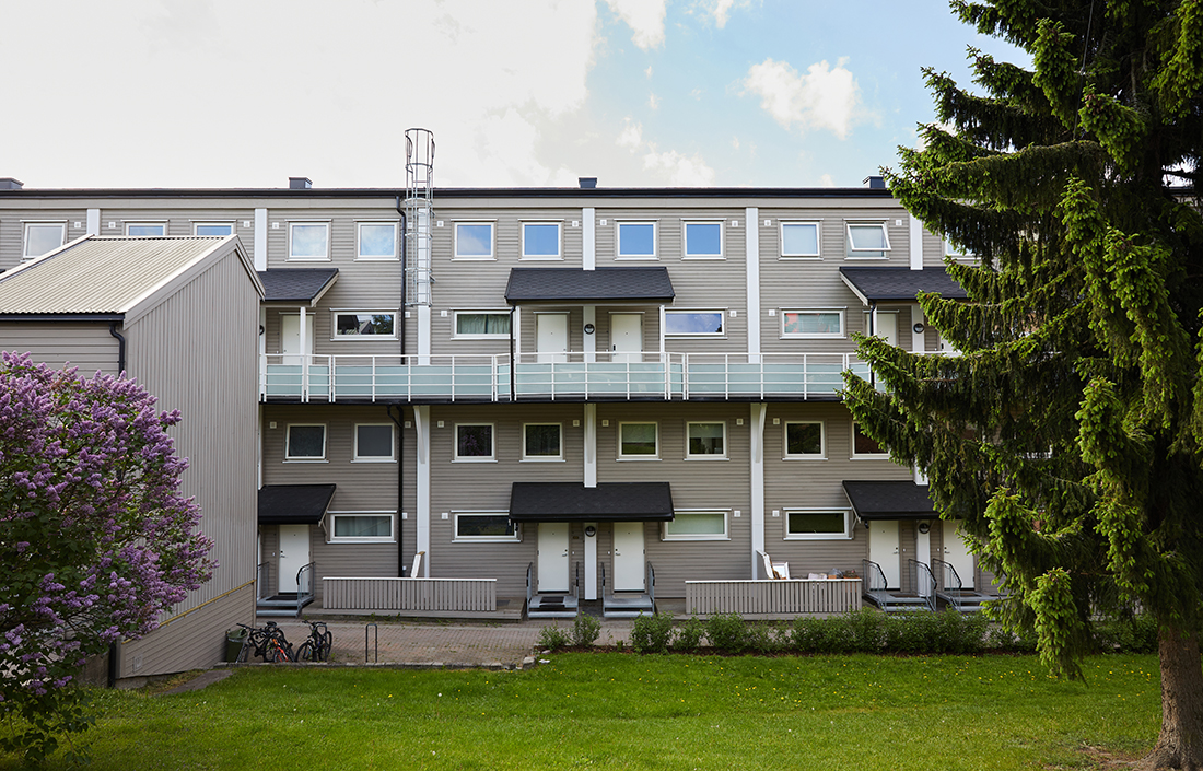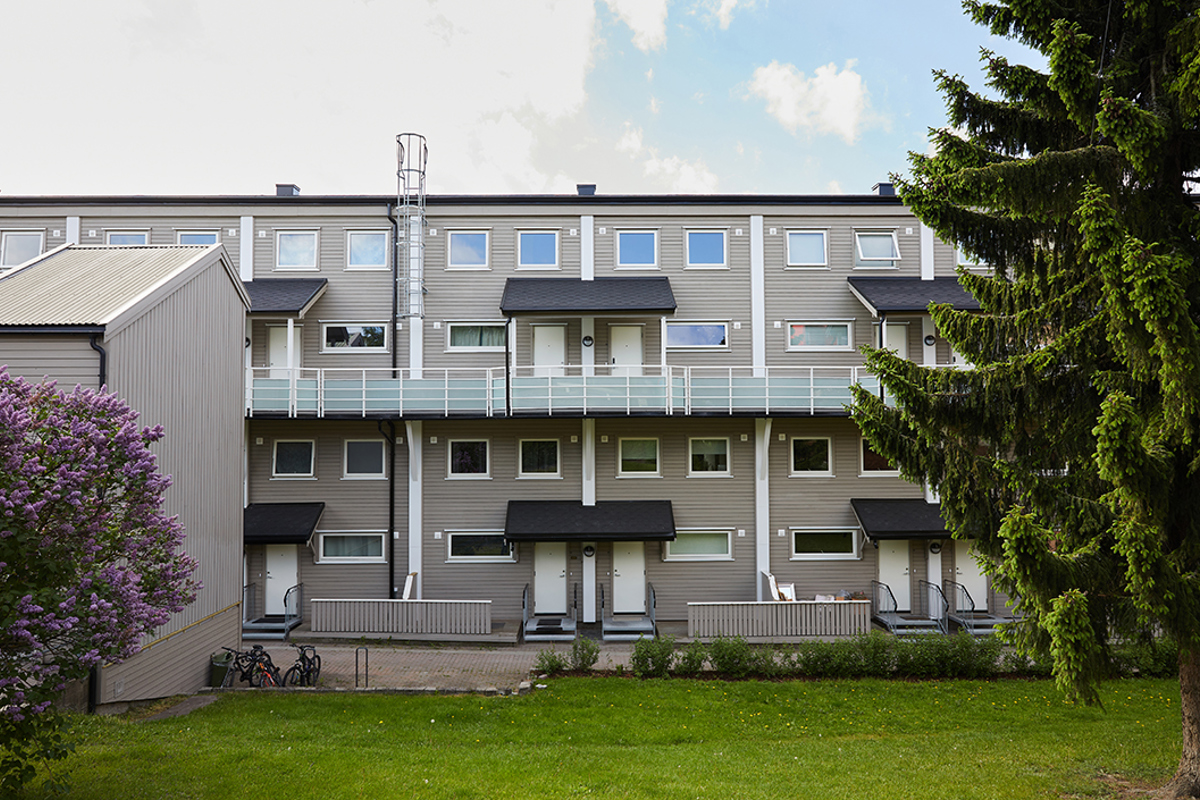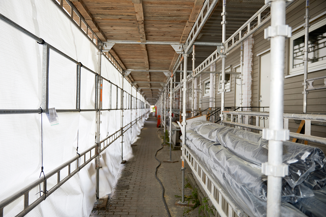 Etterisolering av 3000 kvm fasade på alle inngangssider, nye vinduer, entre- og oppgangsdører. Utbedring av svalganger og nye rømningsveier. Oppgradering av trappehus, nye inngangspartier og porttelefoner. 500 kvm betongrehabilitering og nye trapper.