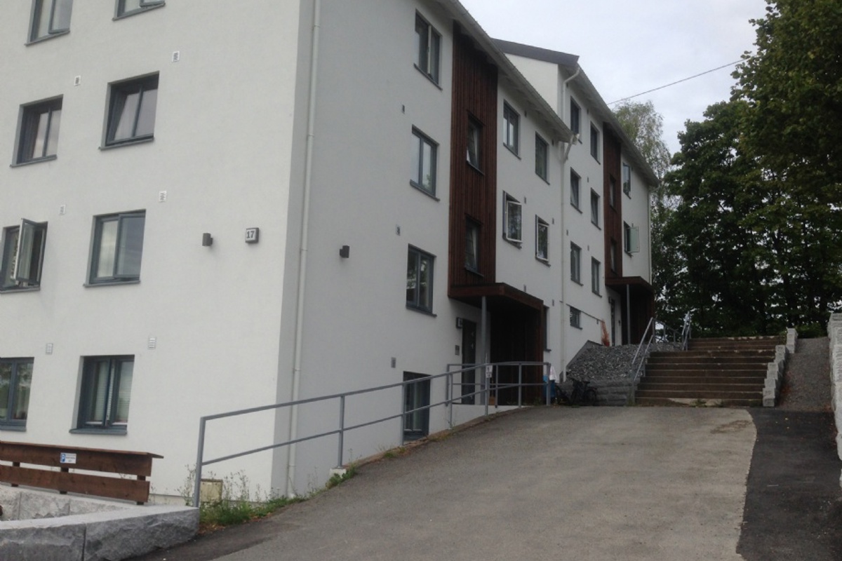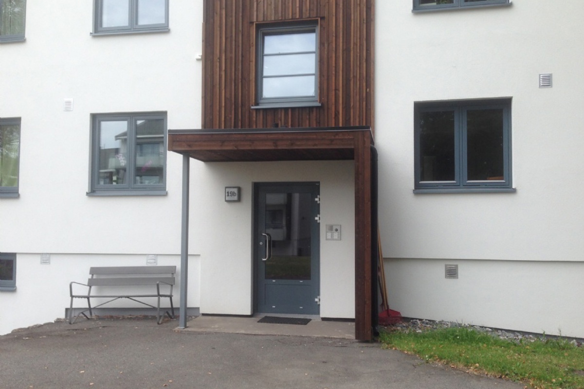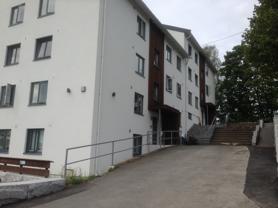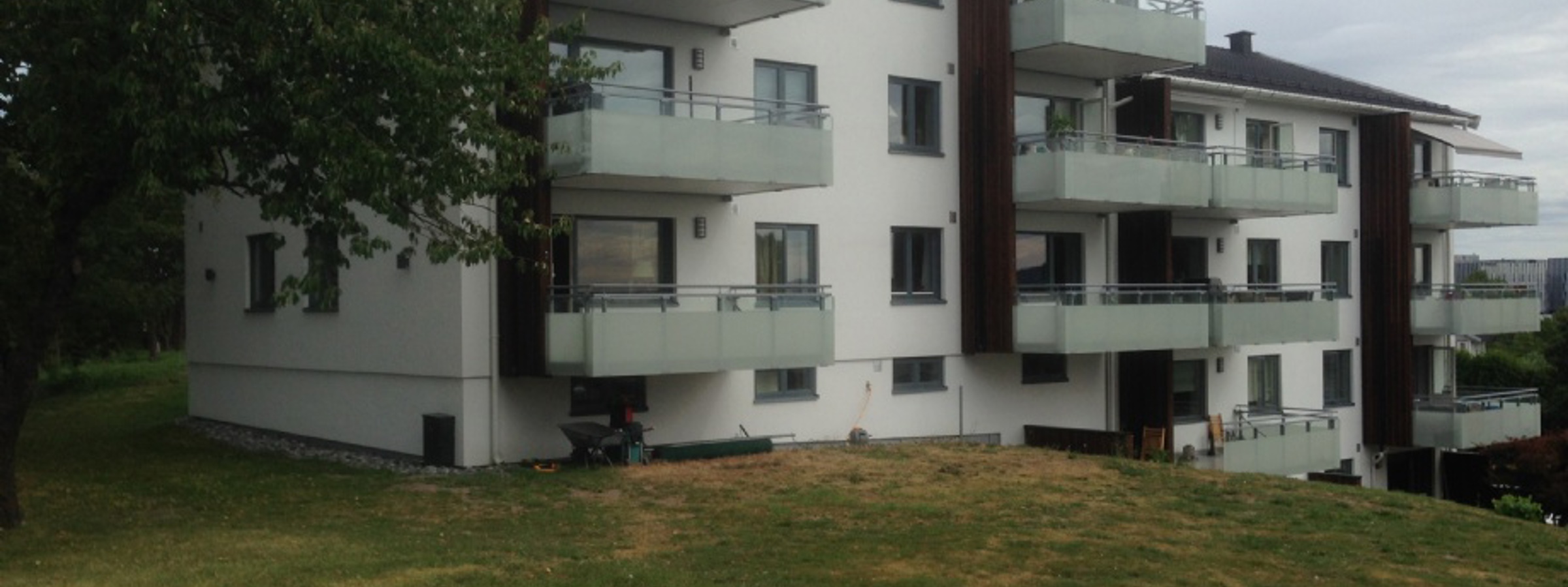 Rehabilitering av alle fasader; etterisolering, ny puss, utskiftet dører og vinduer. Nye balkonger og inngangspartier, dørcalling.