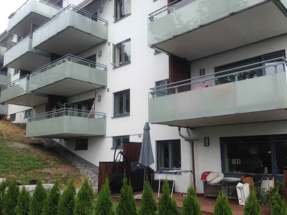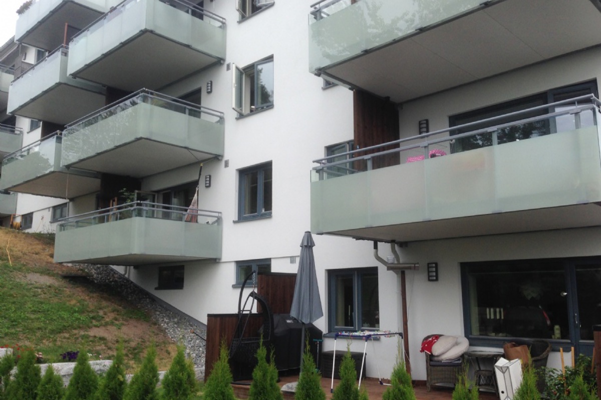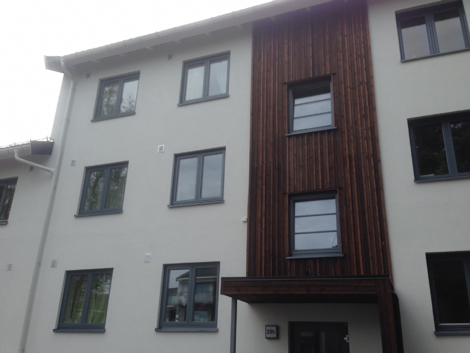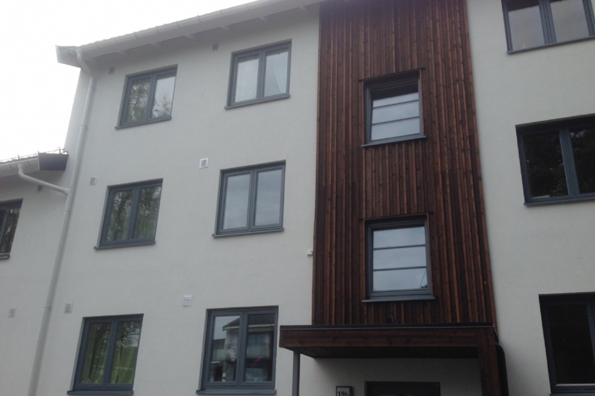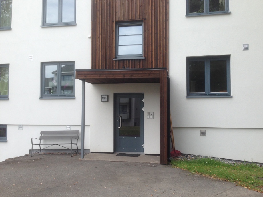 Rehabilitering av alle fasader; etterisolering, ny puss, utskiftet dører og vinduer. Nye balkonger og inngangspartier, dørcalling.