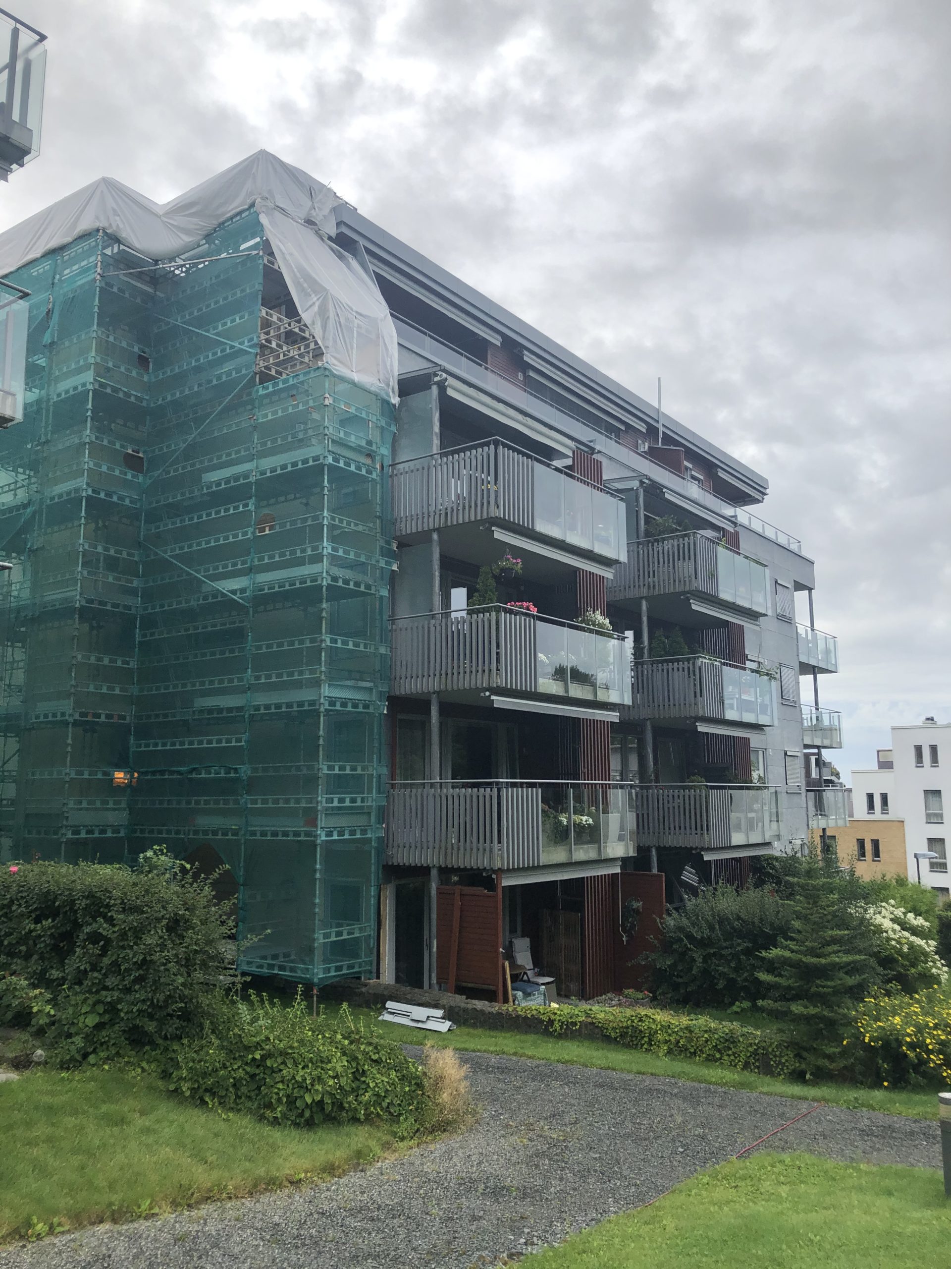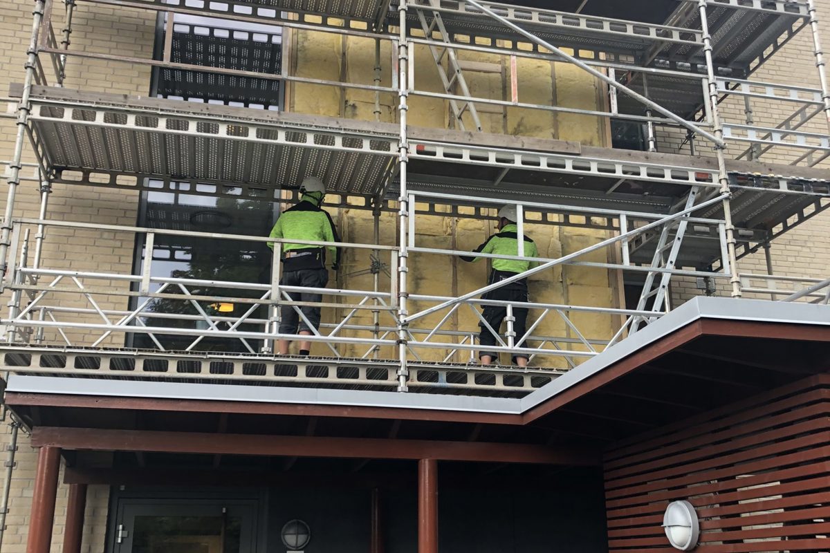 Rehabilitering av 3 blokker på Bekkestua cirka 900 m2.Utskifting av eks vindsperre oppretting av fasader.Utlekting og montering av nye Eqvitone fasadeplater.Beslagsarbeid og maling av vinduer