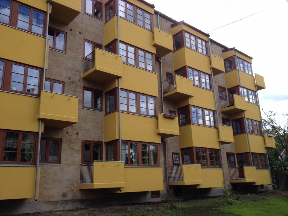 Utskifting av alle vinduer, balkong- og kjellerdører. Nye inngangspartier