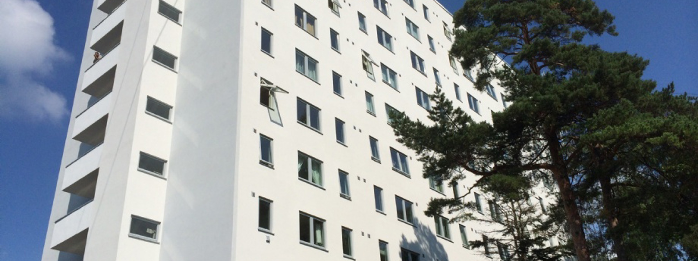 Rehabilitering av alle fasader. Etterisolering og nytt luftet puss-system. Utskifting av alle vinduer og ytterdører