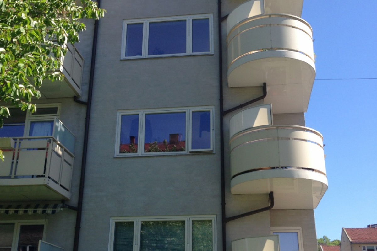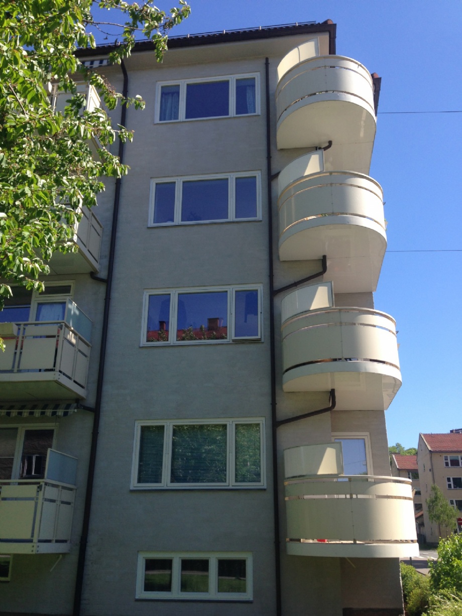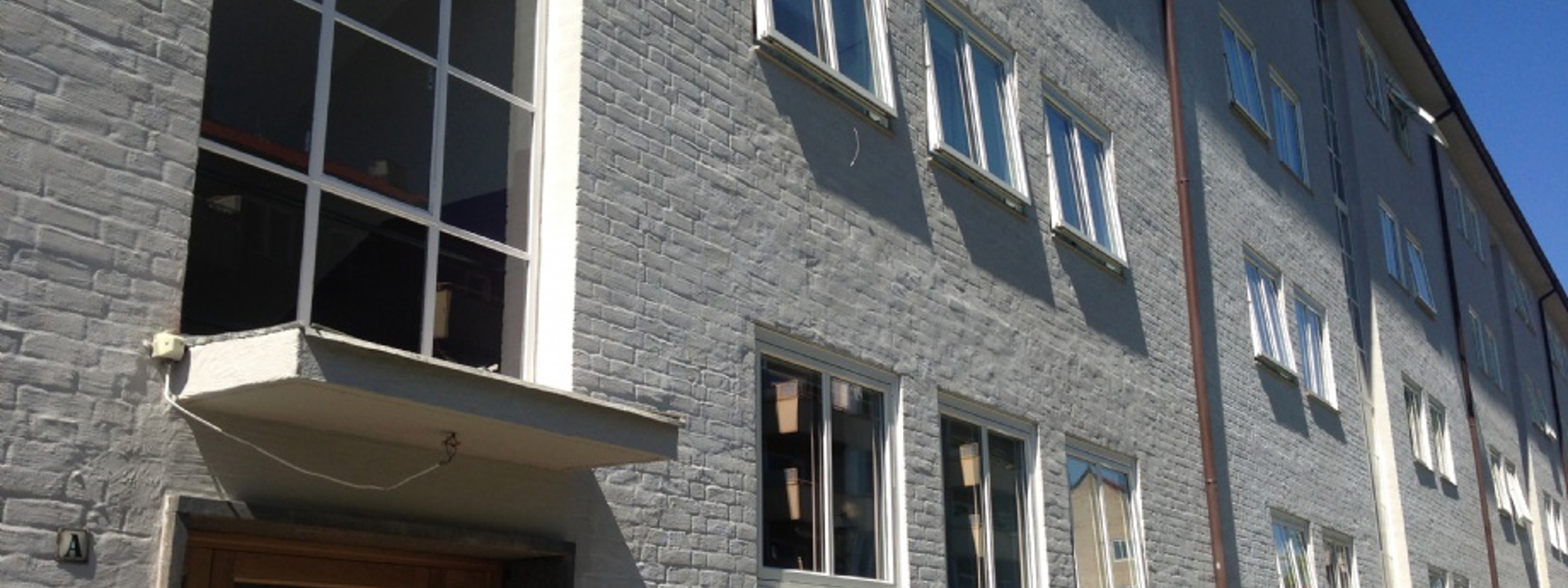 Utskiftet alle vinduer og balkongdører i alle leiligheter og kjeller. Rehabilitering av fasader. Nye inngangspartier