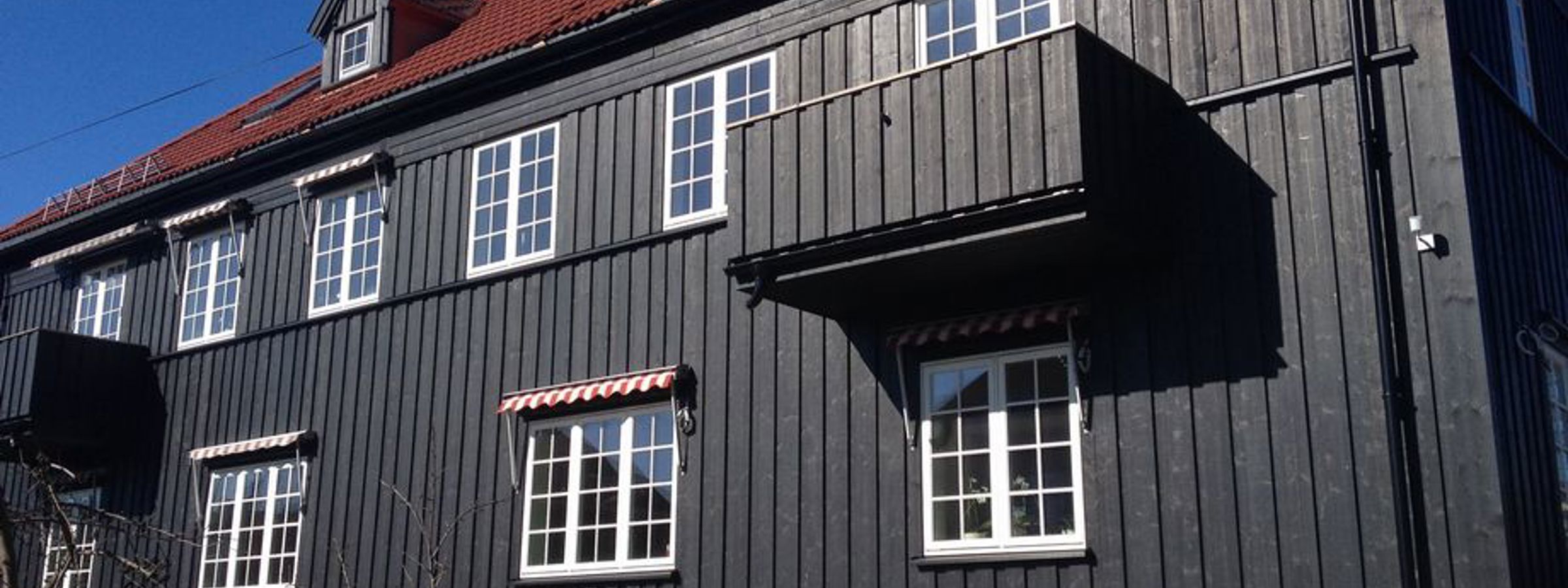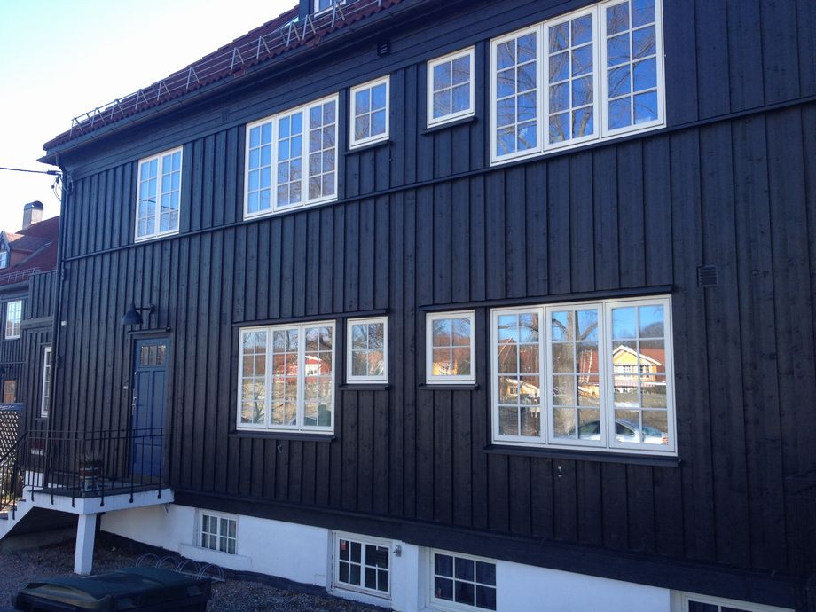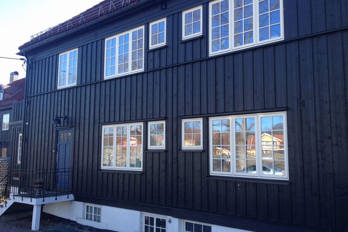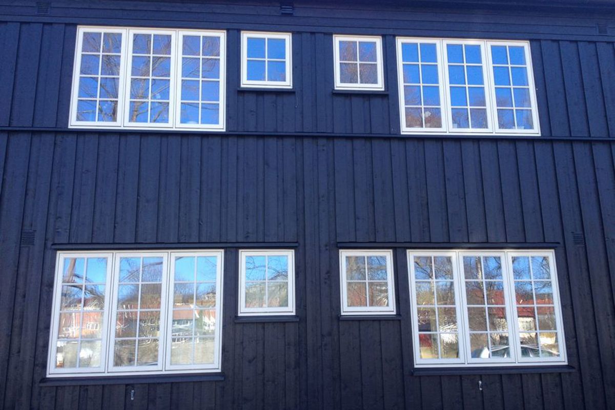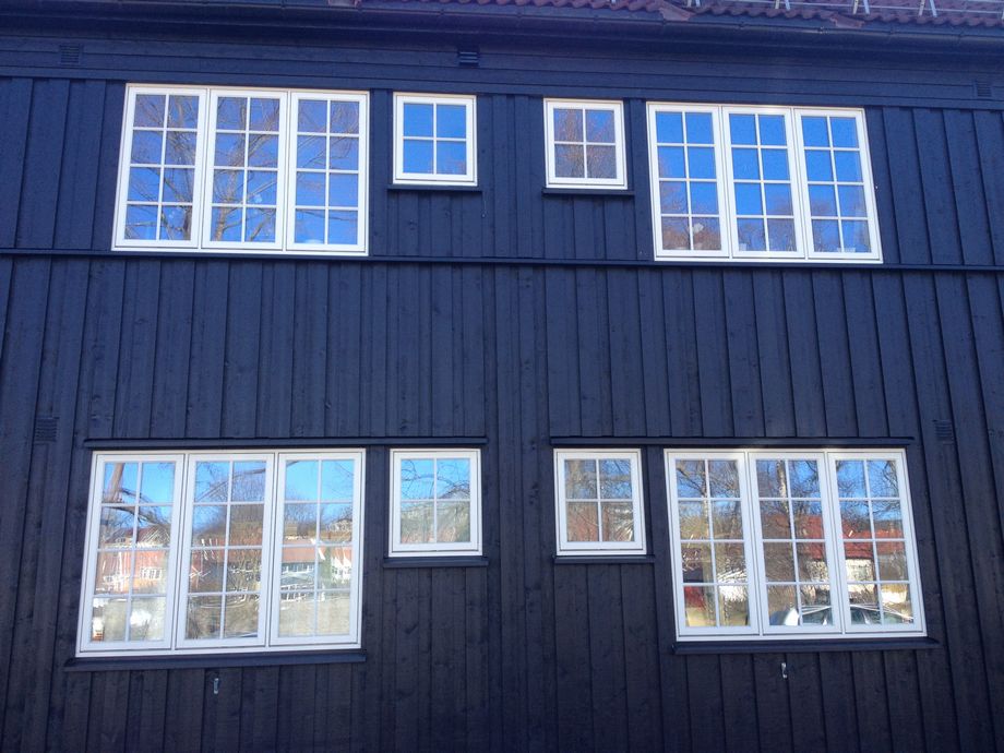 Utskifting av ca 500 dører og vinduer. Etterisolering og ny kledning på ca 4500 kvm fasade