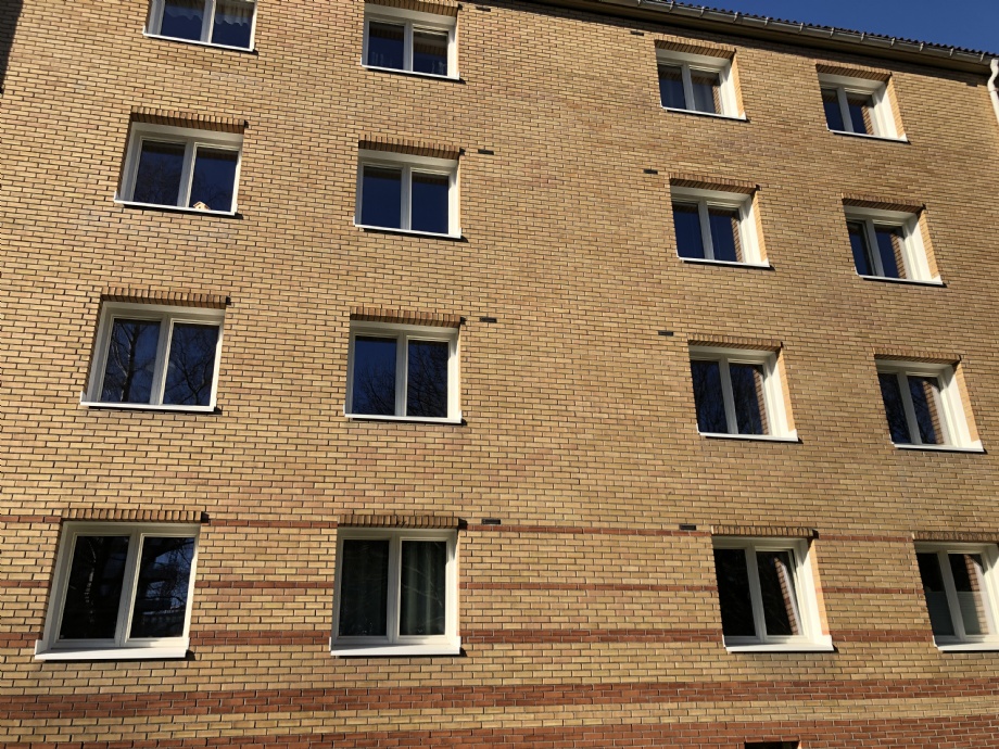 Utskifting av ca 1600 balkongdører og vinduer i leiligheter, kjellere, oppganger og loft. Nye utvendige beslag